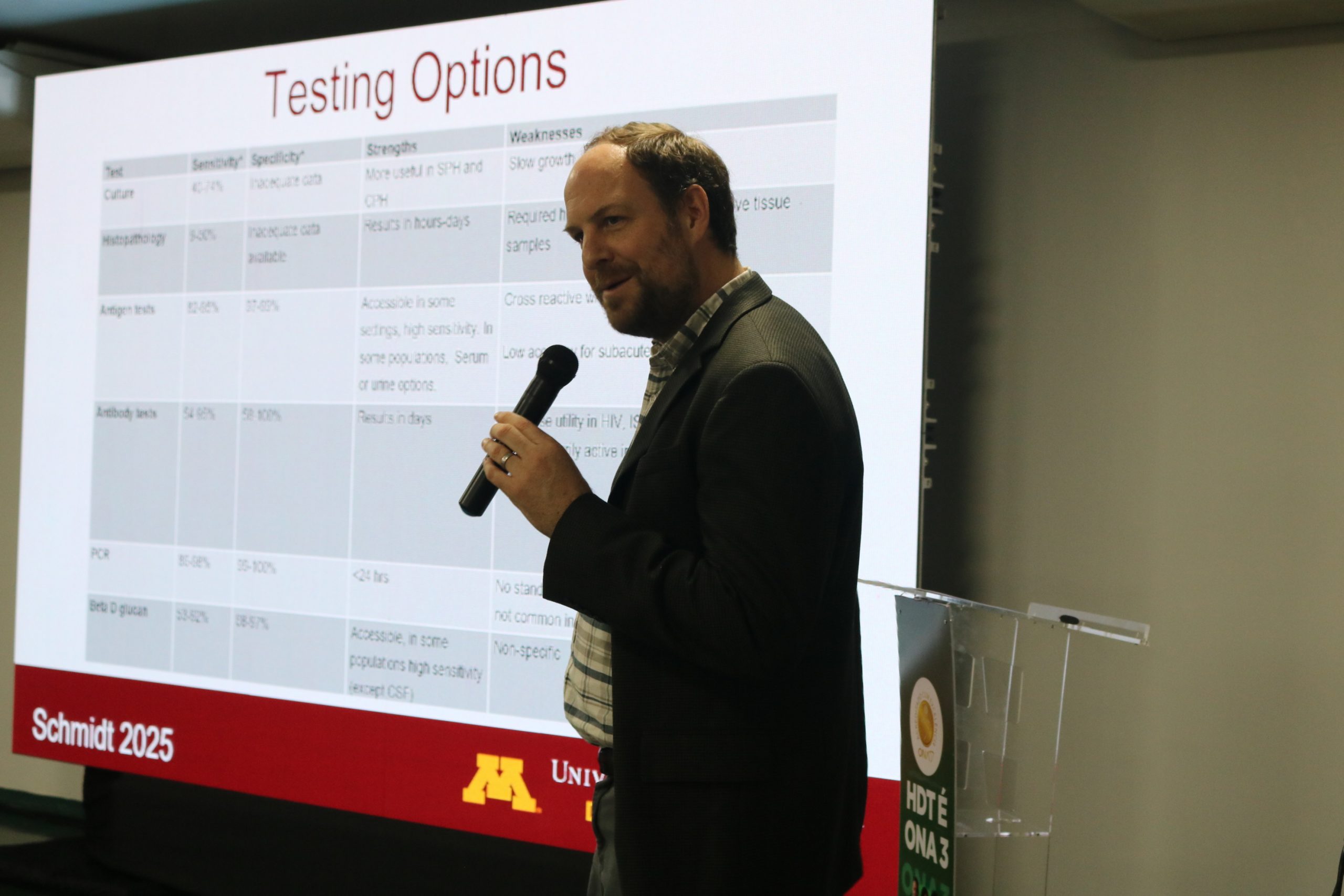 A conferência contou com a participação de especialistas renomados em micoses endêmicas associadas ao HIV e a outras condições de imunossupressão, como o infectologista Nathan Bahr, professor da University of Minnesota e pesquisador de destaque internacional; o infectologista Alessandro Pasqualotto, referência internacional em doenças fúngicas, com forte atuação em pesquisa e coordenação de estudos multicêntricos; e a professora Renata Soares, farmacêutica, doutora em Patologia Molecular, docente do curso de Medicina da PUC-GO e assessora de Pesquisa do HDT.