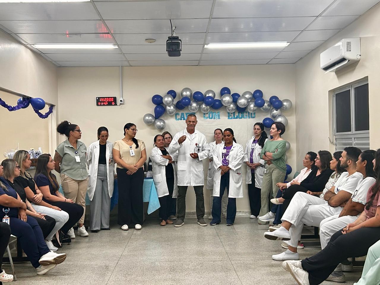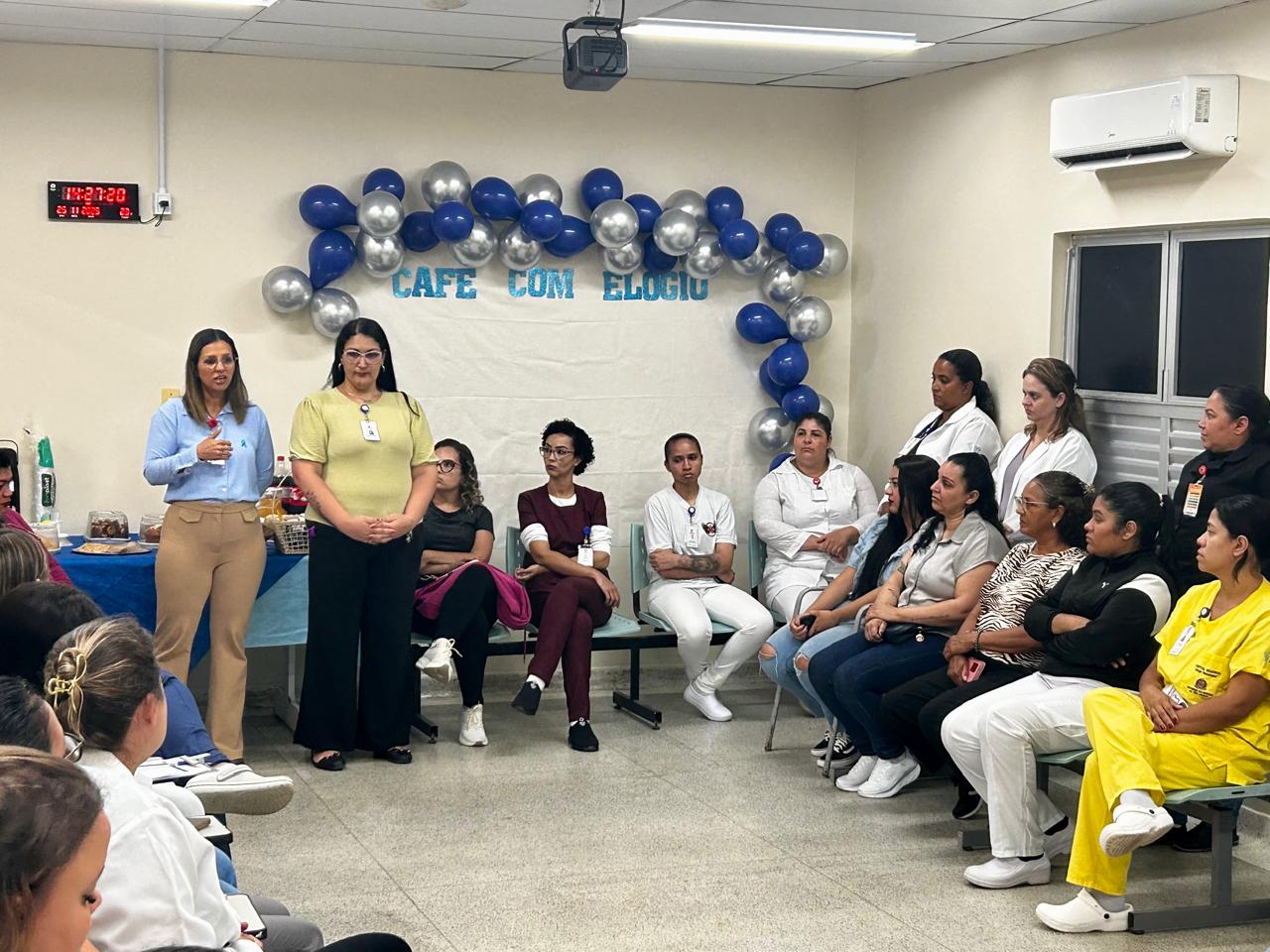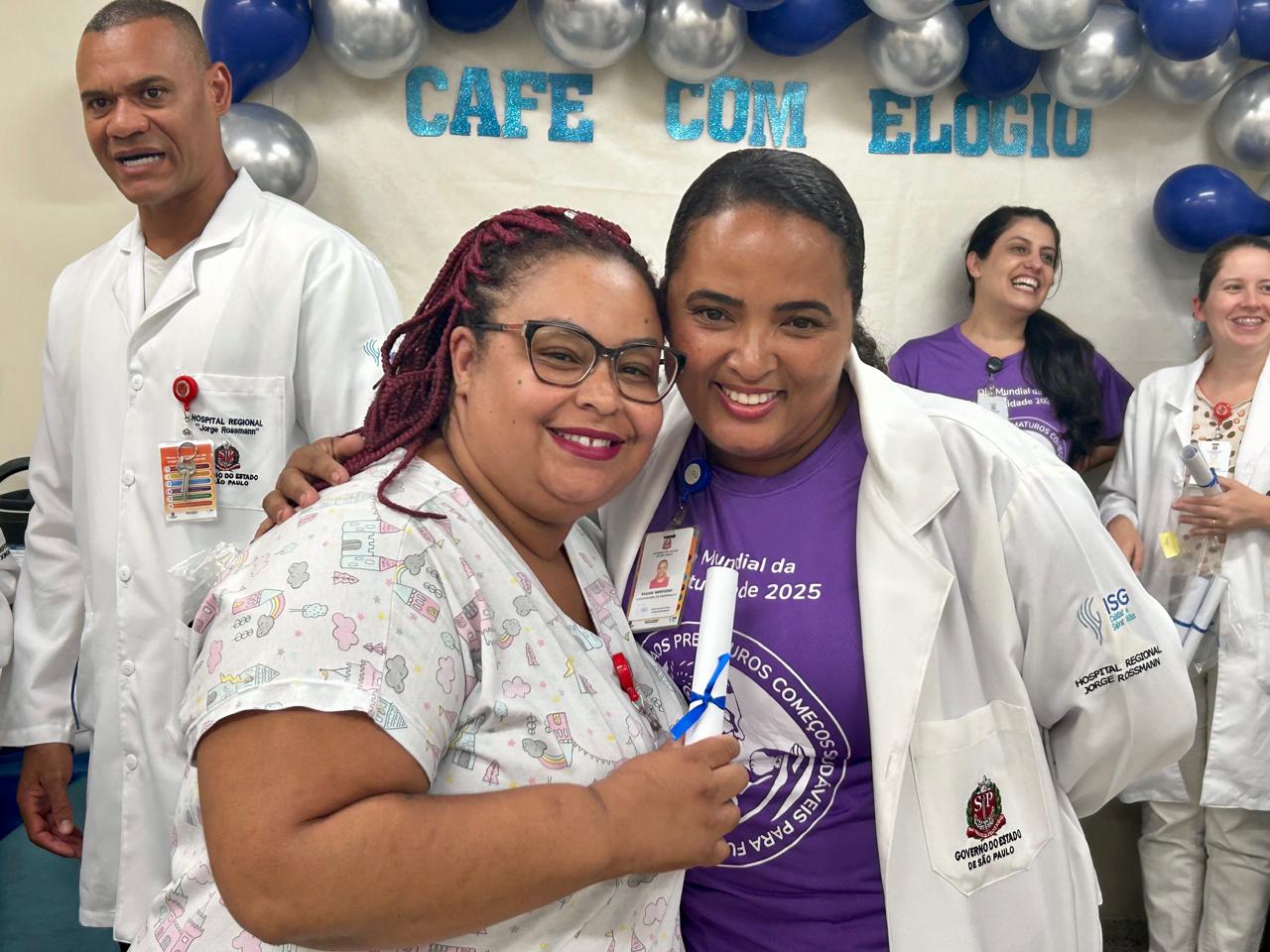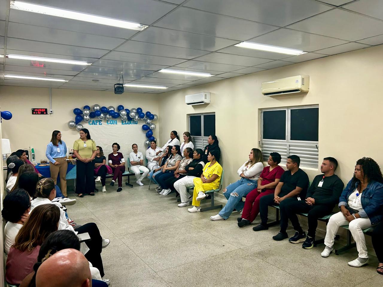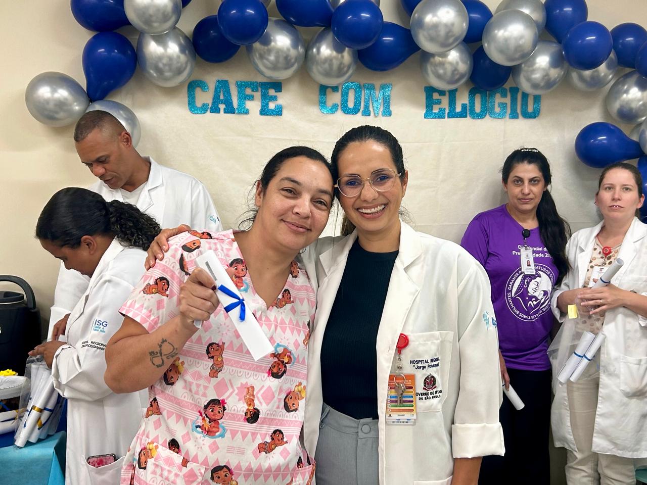 O Hospital Regional Jorge Rossmann realizou o segundo Café com Elogio nos dias 25 e 26 de novembro. O programa promove o reconhecimento e a motivação dos colaboradores da unidade por meio dos elogios registrados na Ouvidoria e no Serviço de Atendimento ao Usuário (S.A.U), reunindo as equipes no Espaço Gestão de Gente para um momento de pausa e leveza.
