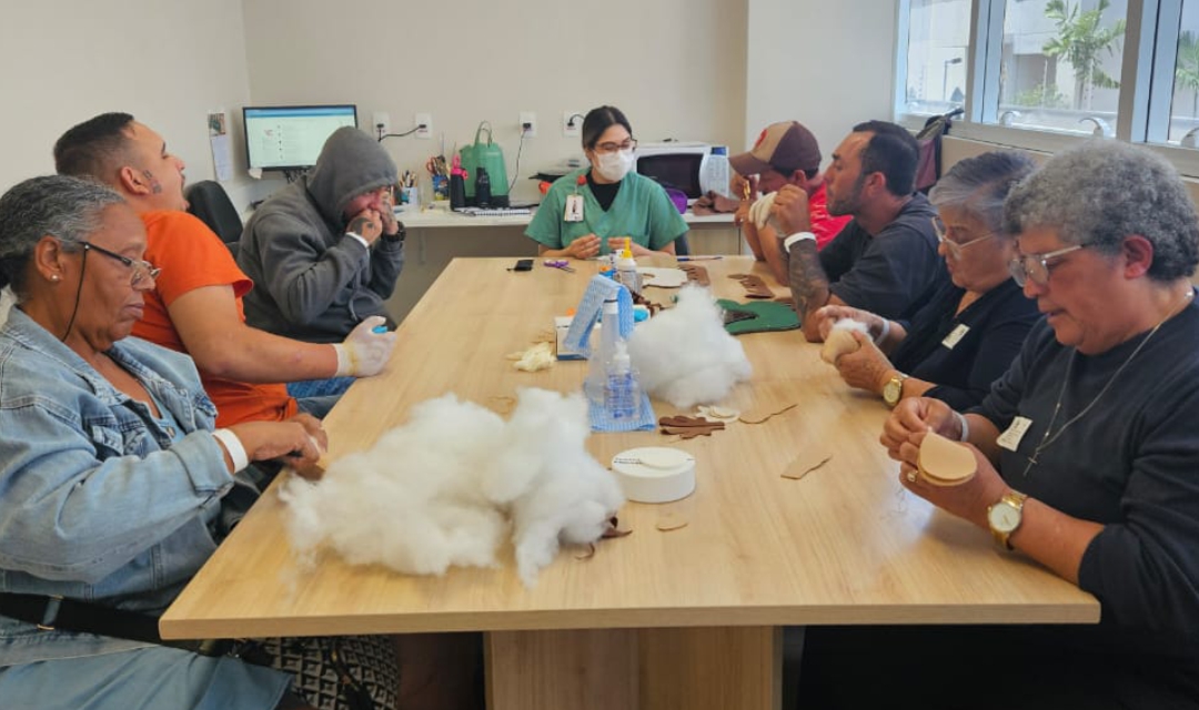 As peças expostas foram produzidas por pacientes que participaram do grupo “Escuta pelas Mãos”, desenvolvido no ambulatório de Terapia Ocupacional do hospital, com atuação integrada da psicóloga Franciane Gonçalves e da terapeuta ocupacional Beatriz Santos. O grupo foi realizado entre outubro e dezembro de 2025, reunindo pessoas em pós-operatório de mão e em processo de reabilitação.